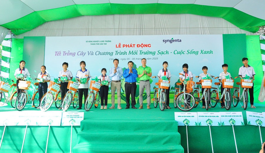 Dịp này, Syngenta Việt Nam trao tặng 10 phần học bổng là 10 xe đạp cho học sinh có hoàn cảnh khó khăn tại thị trấn Phong Điền, giúp các em vững bước tới trường. Ngoài ra, Đoàn Thanh niên Sở Nông nghiệp và Môi trường thành phố Cần Thơ cũng dành tặng 10 phần quà cho các em học sinh hoàn cảnh khó khăn.
