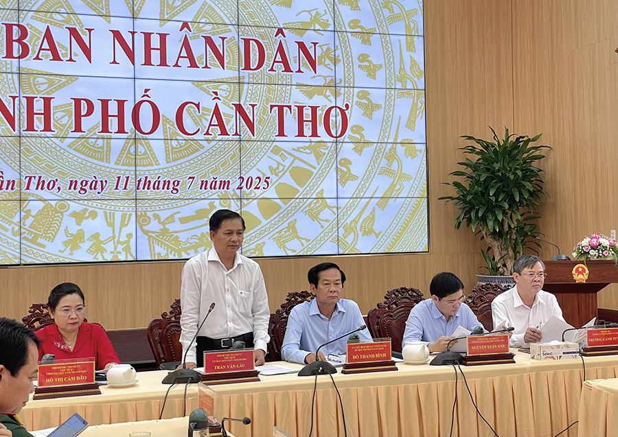 Chủ tịch UBND thành phố Cần Thơ Trần Văn Lâu phát biểu tại hội nghị.