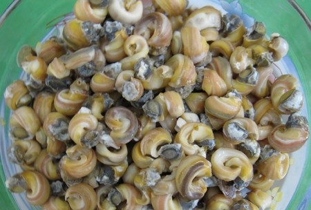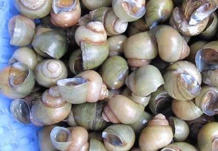 Ốc gạo thịt trắng đục, béo thơm và thường được chế các món như: ốc gạo xào sả ớt, làm nhân bánh xèo, nấu lẩu mắm, luộc chấm nước mắm tỏi ớt, gỏi ốc gạo trộn với dừa nạo, gỏi ốc gạo chuối cây…. Nhưng, món ăn gây ấn tượng nhất trong ngày Tết Đoan Ngọ ở quê tôi vẫn là Bánh xèo ốc gạo.